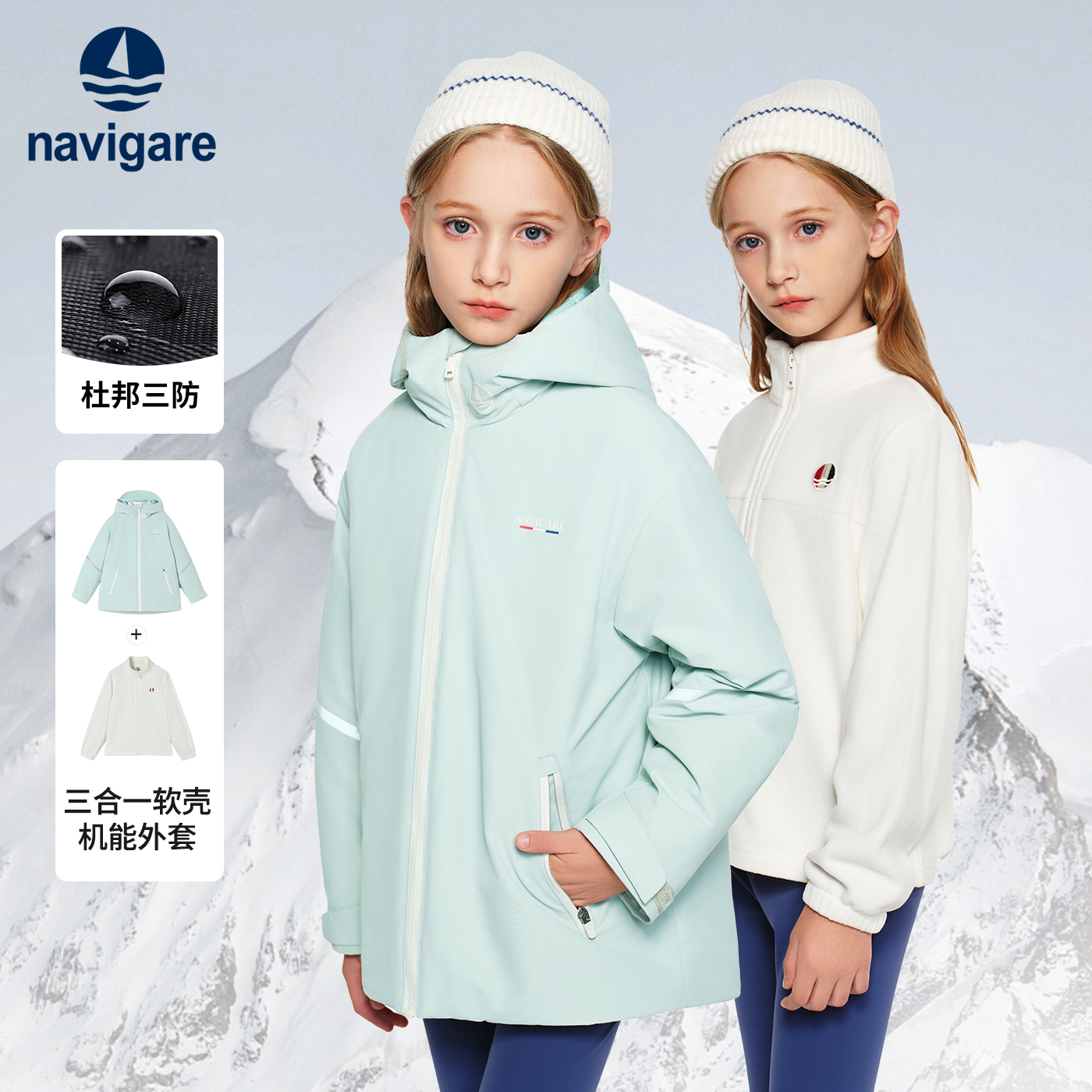 Navigare意大利小帆船兒童三合一外套三防面料女童冬天童裝搖粒絨