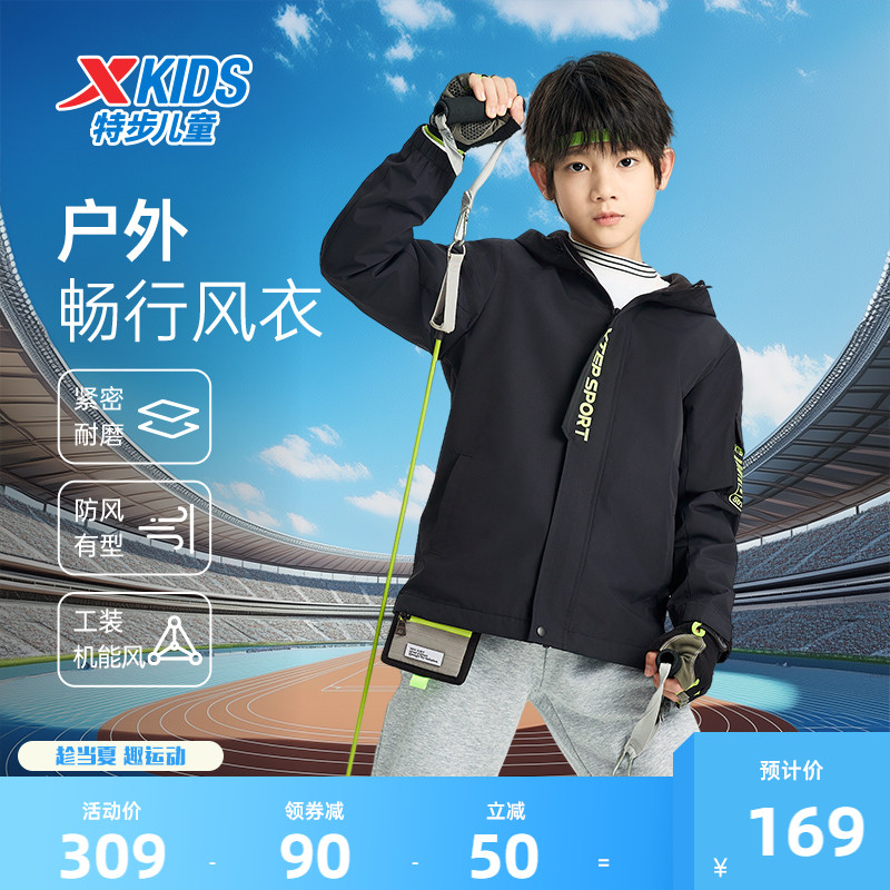 特步童裝兒童沖鋒衣外套春秋新款戶外防風春季青少年運動風衣男童