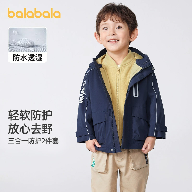 巴拉巴拉男童連帽外套兒童防水兩件套大童軟殼衣2025秋季新款童裝