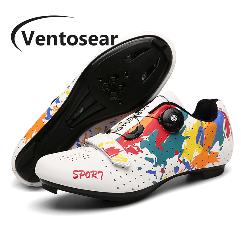 新款鐵三鎖鞋騎行鞋輕便指紋防滑公路鎖鞋防滑碳纖維自行車鞋
