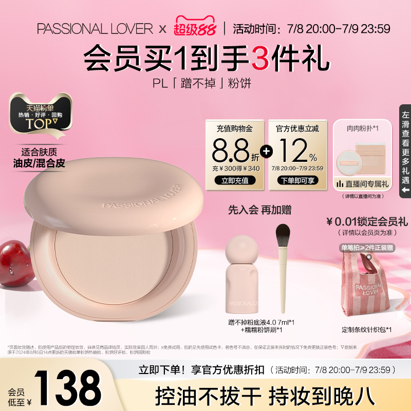 PL蹭不掉粉餅油皮 看不見干皮粉餅定妝柔焦蜜粉底妝持久控油啞光