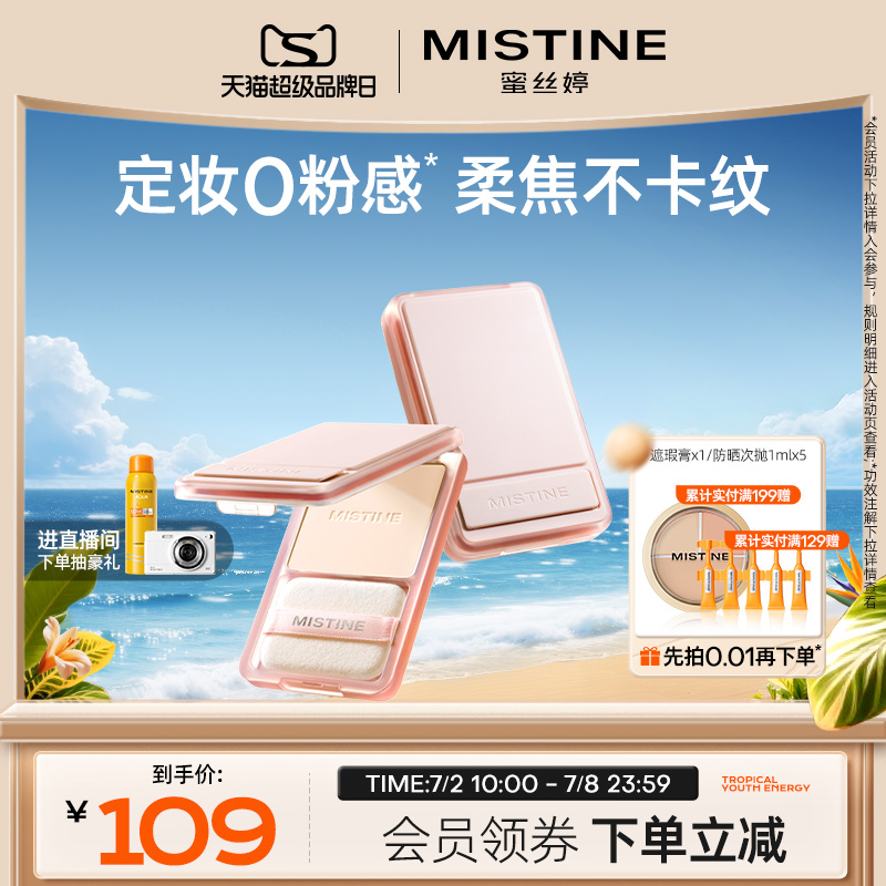 Mistine蜜絲婷羽翼粉餅防曬定妝持久散粉遮瑕蜜粉思輕薄霧面