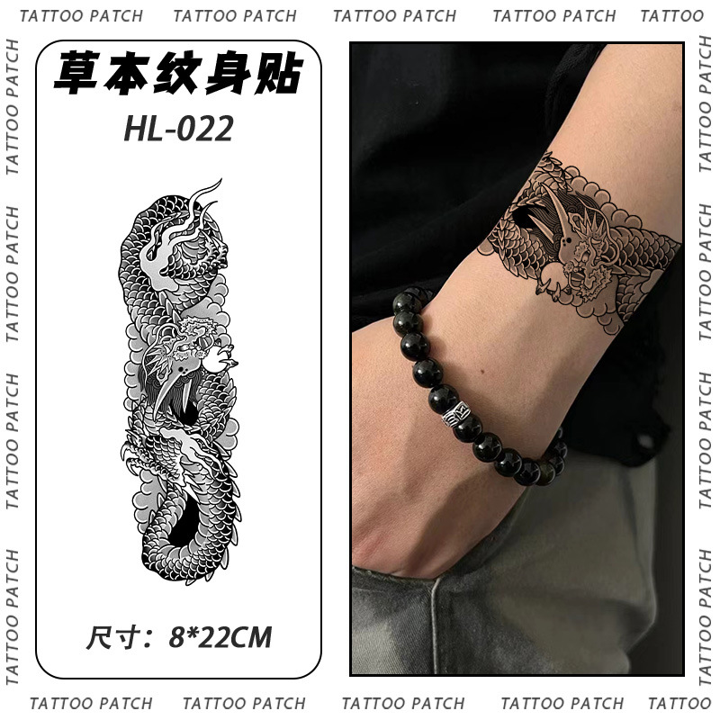 【拍一發3張】網紅霸氣龍虎草本紋身貼防水男持久不反光身體貼紙