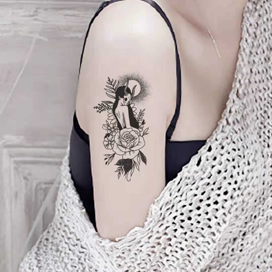 極速紋身貼防g水持久女性感花臂暗黑花朵素色手臂大腿仿真個性貼