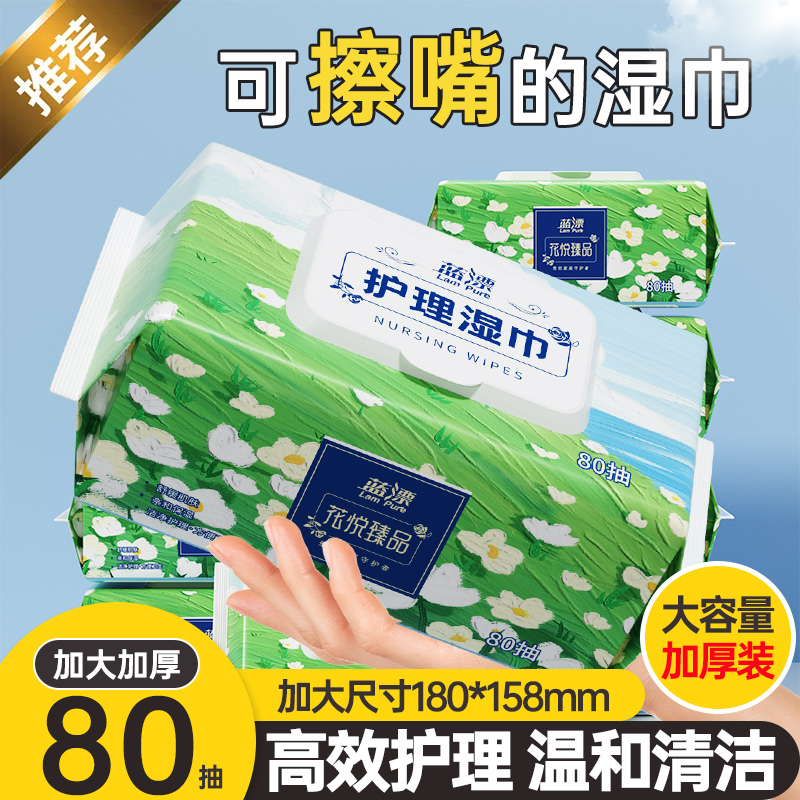 80抽濕巾嬰兒手口專用家庭裝大尺寸寶寶擦臉擦屁股濕紙巾水潤親膚