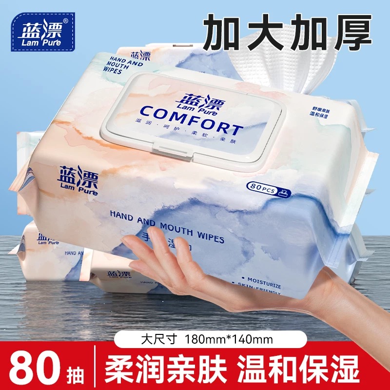 里柔新品季銨鹽殺菌衛生濕巾大包80抽無酒精家用清潔非酒精濕巾紙