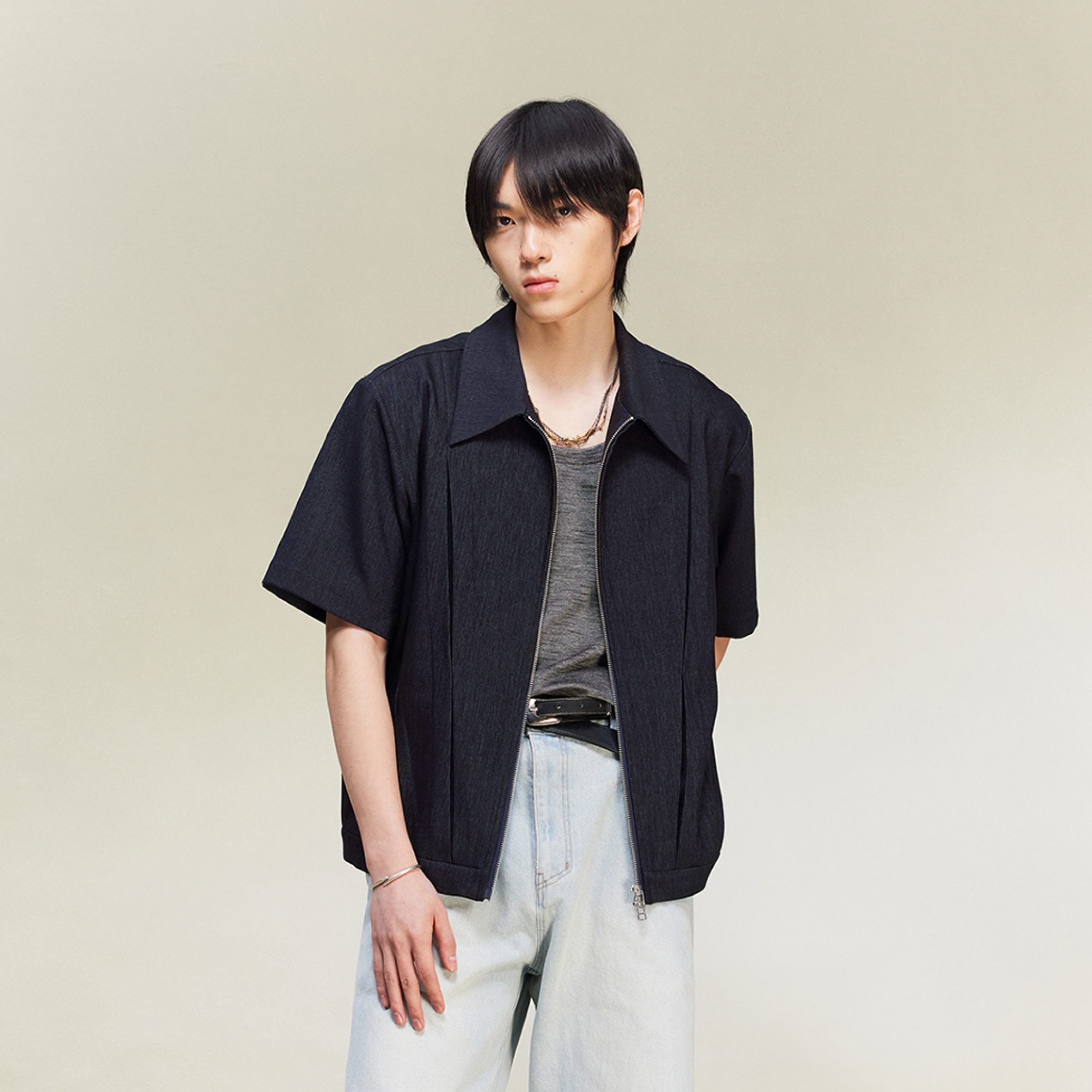 蕓蟻〔影〕特殊仿牛仔肌理光影褶動態感短袖襯衫