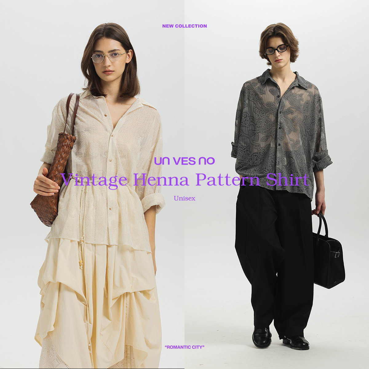 【鏤空植絨】Unvesno(UN)腰果花朦朧老錢透視氛圍感物理防曬襯衫