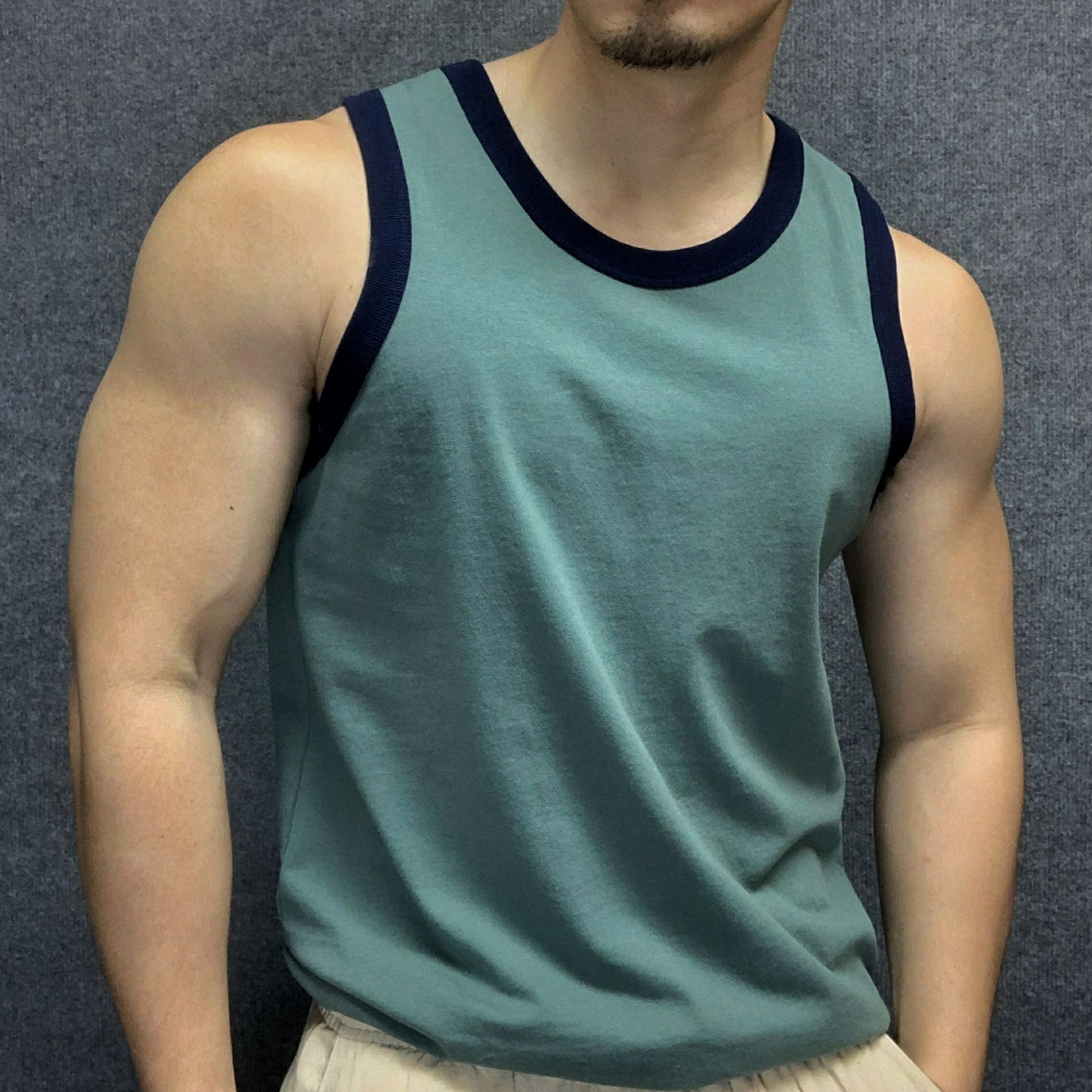 凈版男士背心復古坎肩純棉無袖T恤健身肌肉訓練夏季運動衣籃球服