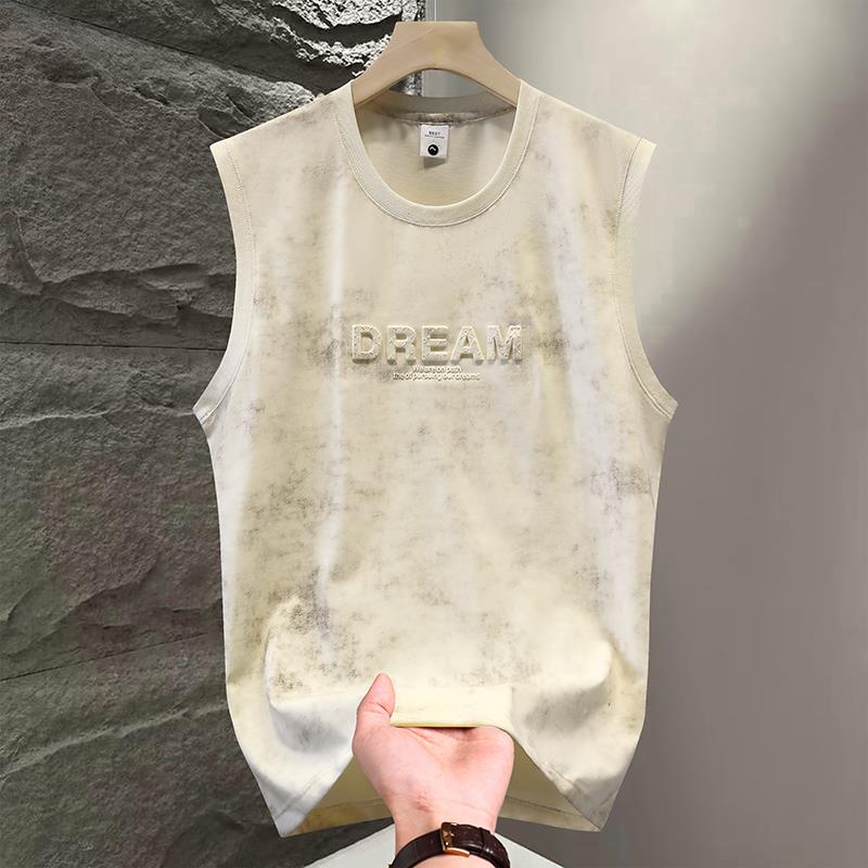 查爾斯桃心 美式扎染坎肩背心男款2025年夏季純棉無袖T恤健身運動