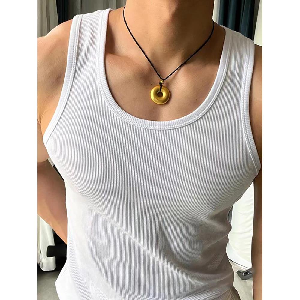 小紅書同款男士背心白色內搭T粗螺紋棉打底夏季男款運動健身汗衫
