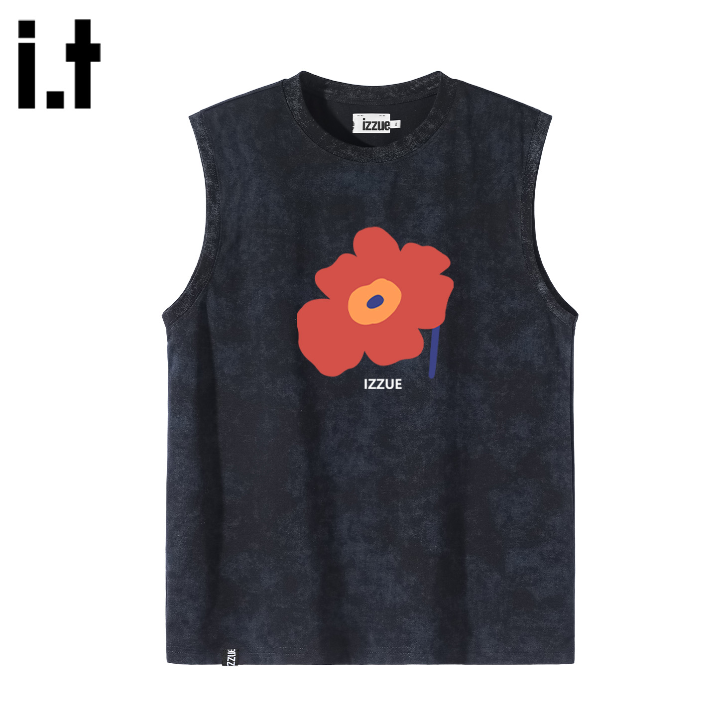 it izzue美式圓領潮牌無袖T恤背心男2025年夏季寬松復古蠟染坎肩C