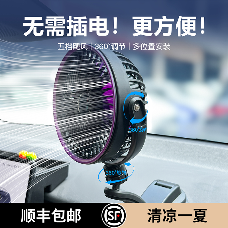 新款2025車載充電式降溫小風扇靜音高續航電池通用汽車夏天電風扇