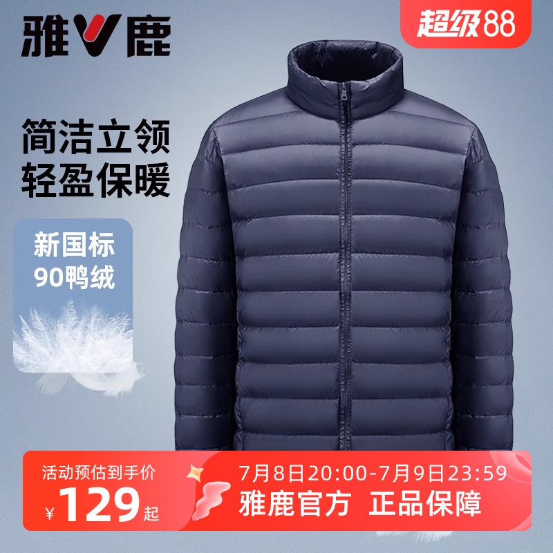 【新國標90鴨絨】雅鹿輕暖羽絨服男短款2025春秋新款輕薄保暖外套