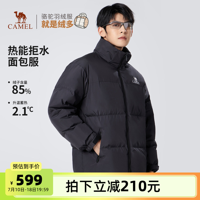 駱駝男裝防潑水面包服男秋冬連帽加厚保暖鴨絨短款拒水羽絨服外套