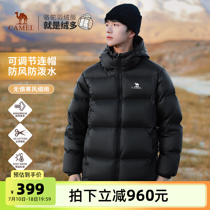 駱駝男裝2025秋冬新款三防羽絨服男連帽加絨加厚保暖短款防寒外套
