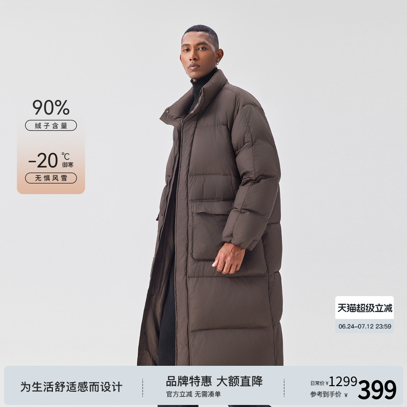 sq區綾致杰克瓊斯冬時尚潮戶外防潑水連帽寬松中長款羽絨服外套男