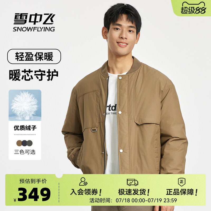 雪中飛2025秋新款男士短款羽絨服棒球領領外套戶外運動保暖百搭
