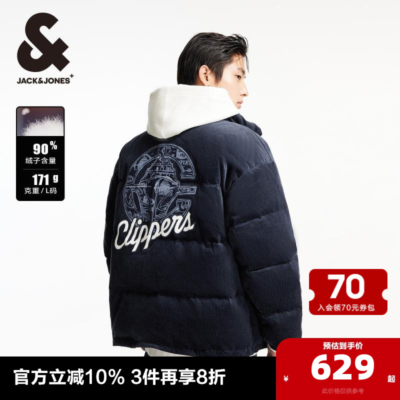 杰克瓊斯NBA聯名快船隊刺繡冬季時尚百搭舒適保暖羽絨服外套男裝