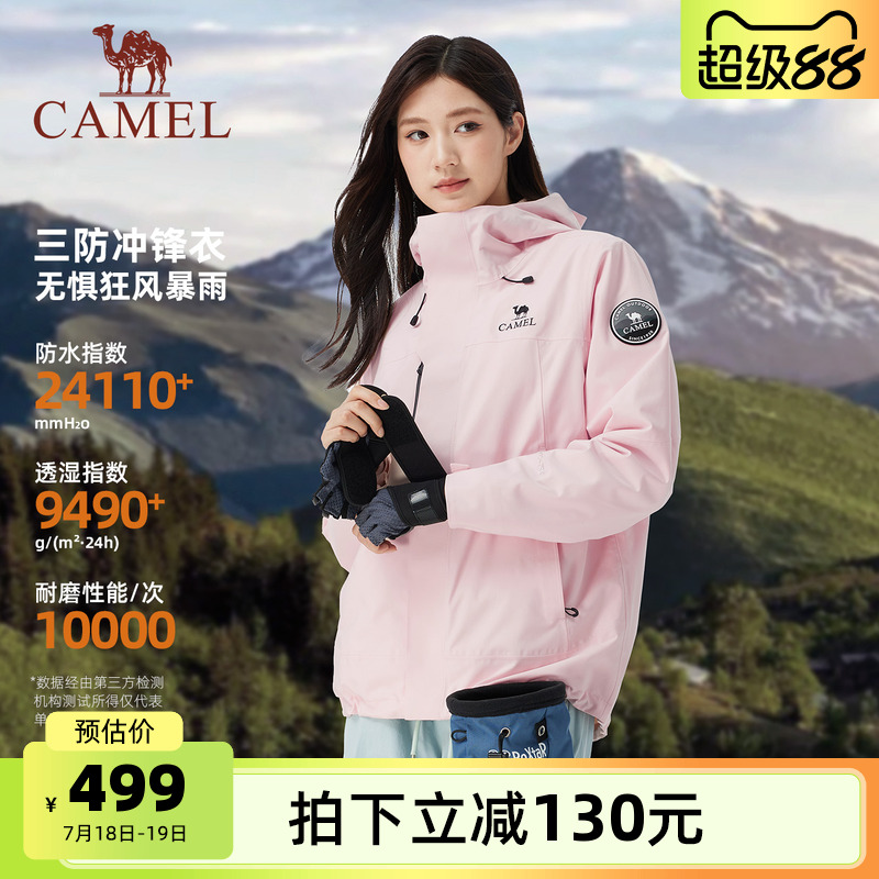 駱駝女裝沖鋒衣三合一外套2025新款抓絨內膽防水休閑外套夾克