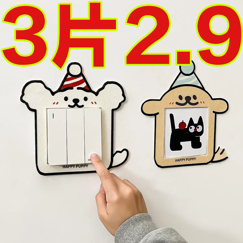 可愛小狗開關貼裝飾自粘貼家用插座面板遮丑美化裝飾框