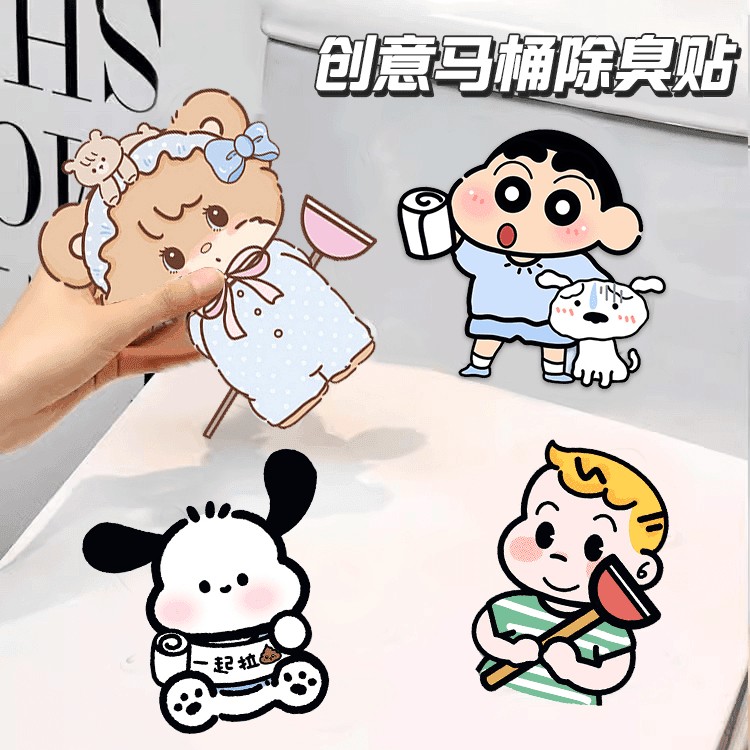 衛生間馬桶除臭貼去異味留香貼自粘式廁所卡通裝飾貼紙防水消臭貼