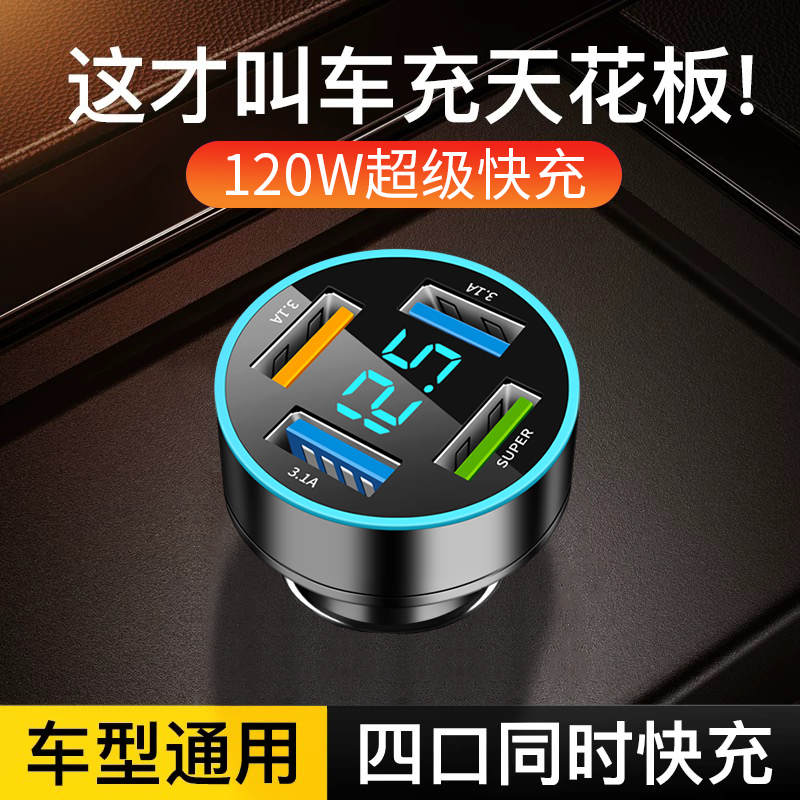 960W車載充電器超級快充汽車點煙器轉換插頭車充超級閃充USB四口