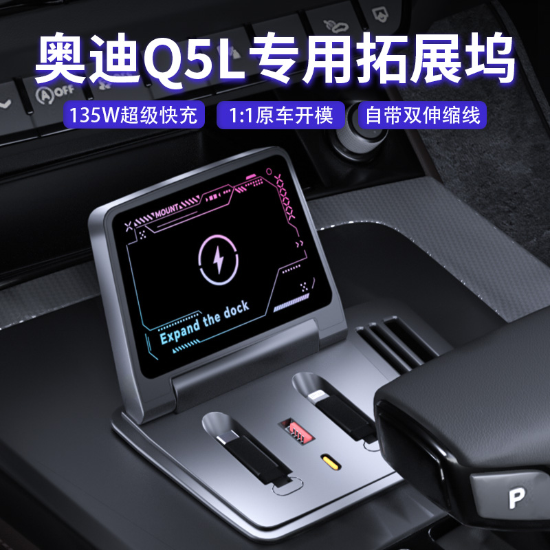 21-24款奧迪Q5L車載無線充電器拓展塢超級快充電擴展車內用品改裝