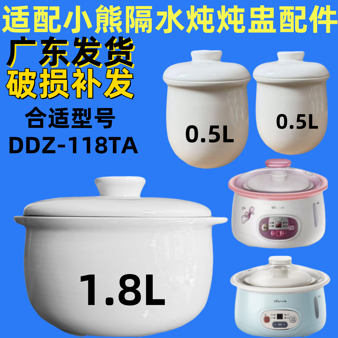 適配小熊陶瓷內膽1.8升配件0.5升小燉盅DDZ-118TA隔水燉盅配件