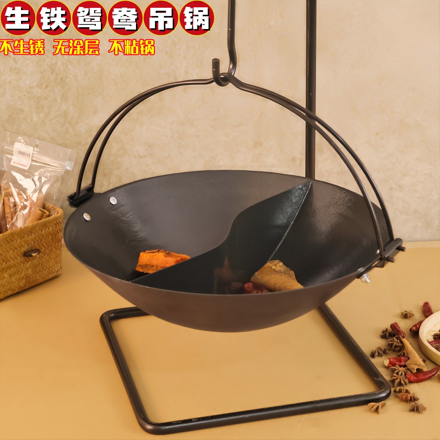 鴛鴦生鐵吊鍋傳統老式商用吊爐火鍋鐵鍋農家樂柴火特色餐具地鍋雞