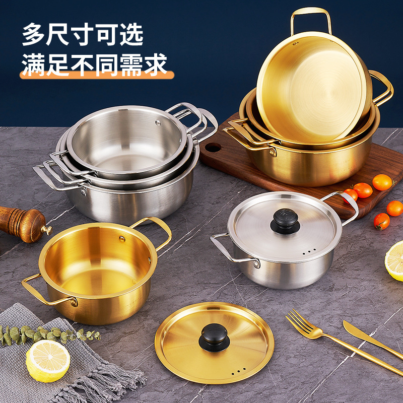 韓國泡面鍋小煮鍋家用不銹鋼雙耳螺獅粉專用鍋韓式拉面帶蓋清湯鍋