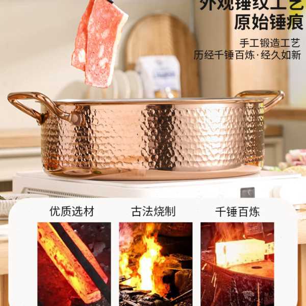 復古銅鍋純紫銅加厚電磁爐銅火鍋銅湯鍋燃氣純銅鍋酸菜燉鍋手工銅