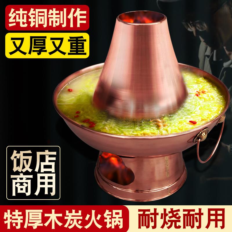 商用特厚銅火鍋銅鍋木炭純銅老式老北京涮羊肉飯店專用紫銅火鍋