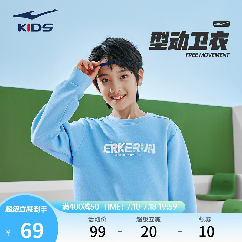 鴻星爾克兒童百搭衛衣秋加絨男大童圓領套頭衫休閑上衣女孩運動衫