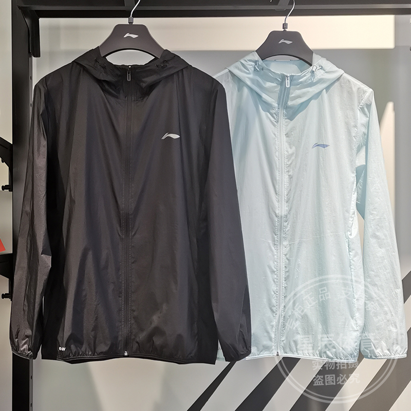 李寧男子防曬衣2024夏季新款防潑水運動風衣連帽休閑外套AFDU459