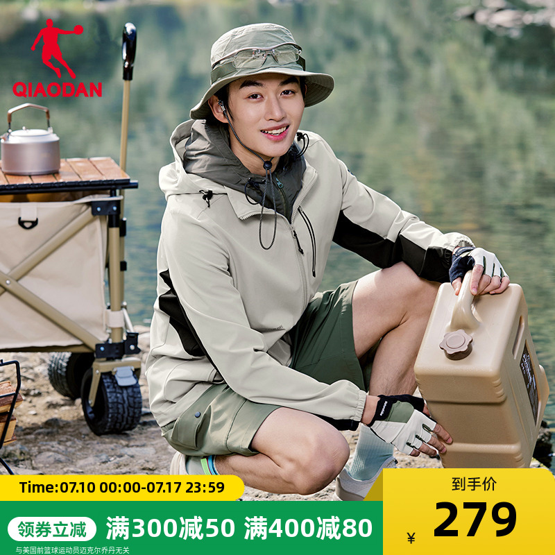 中國喬丹梭織外套男2025夏季新款男士連帽防潑水風衣戶外運動上衣