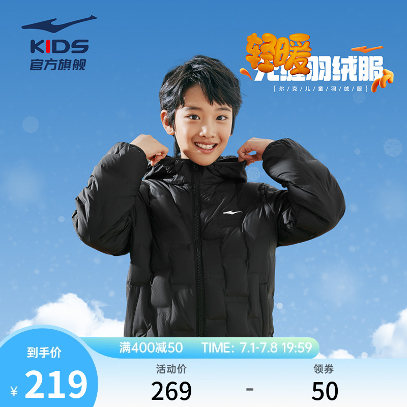鴻星爾克兒童羽絨服男童中長2025年新款中大女童夏季百搭加厚外套