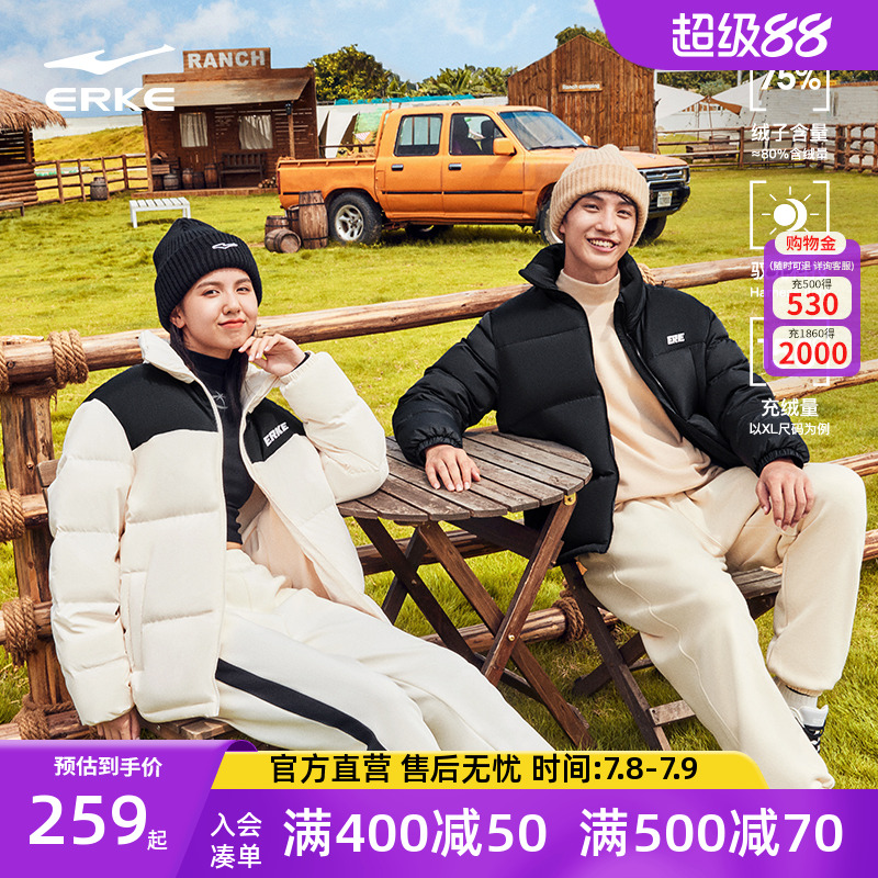 馭光科技鴻星爾克羽絨服冬季男女情侶面包服羽絨立領保暖外套