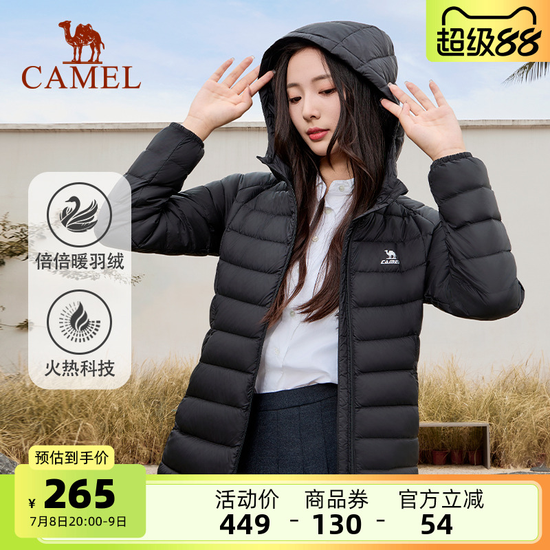 駱駝運動羽絨服女輕薄款2024秋冬新款保暖內膽連帽休閑羽絨服外套