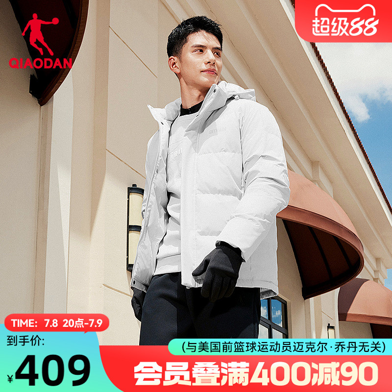 361度男士短款羽絨服2024年冬季時尚百搭361男子保暖外套連帽上衣