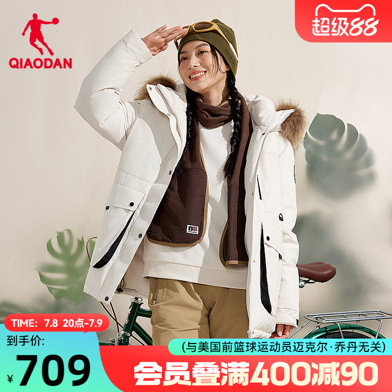 中國喬丹保暖連帽羽絨服女冬季新款官方正品商場同款外套休閑舒適