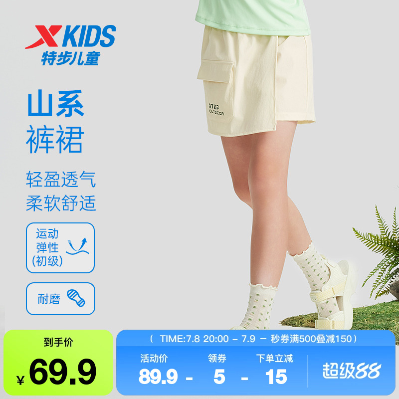特步童裝兒童褲裙女童半身裙夏季新款運動短裙中大童戶外工裝裙子