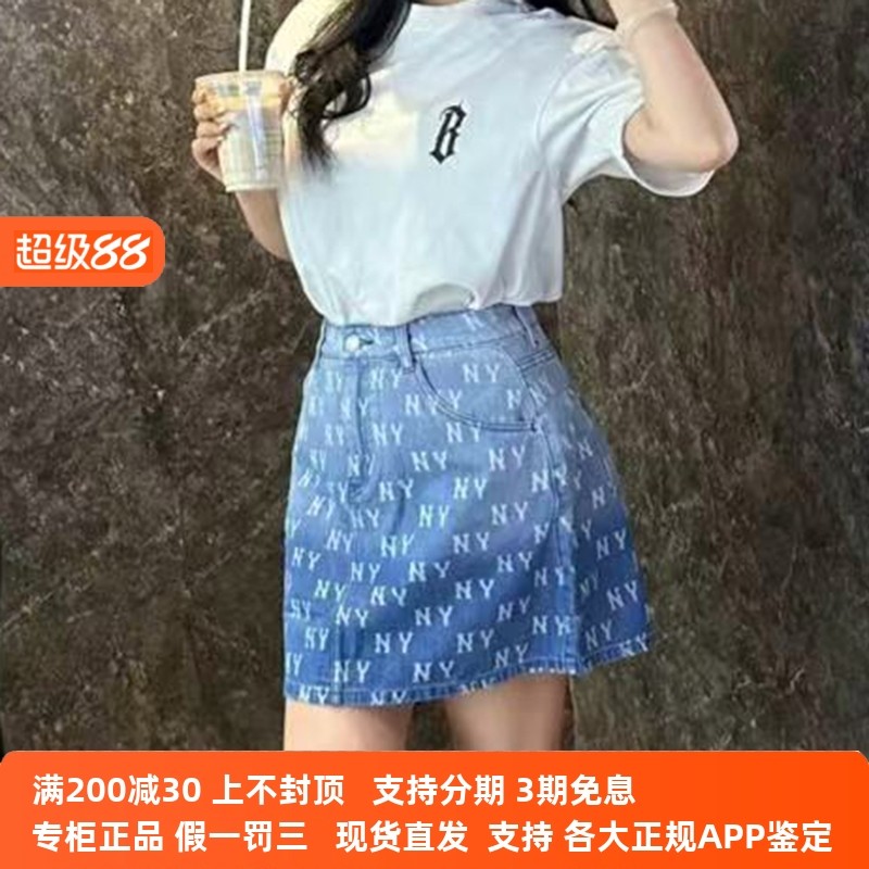 國內現貨MLB女士25新款漸變休閑滿印老花百搭牛仔短裙3FDSM0253