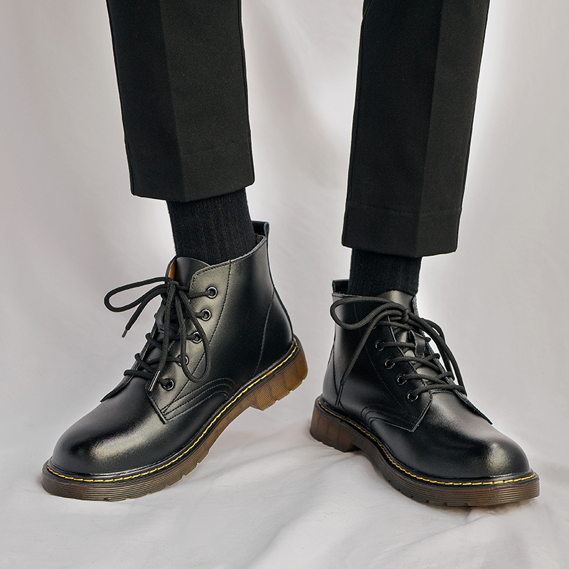 真皮黑色春季高幫馬丁靴男帥氣英倫機車百搭皮鞋港風情侶工裝潮鞋