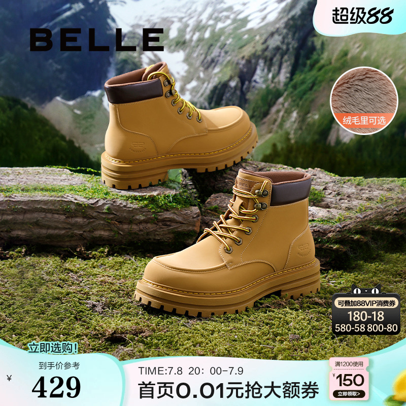 百麗男鞋戶外加絨工裝靴男靴冬新厚底休閑短靴大黃靴A1699DD4