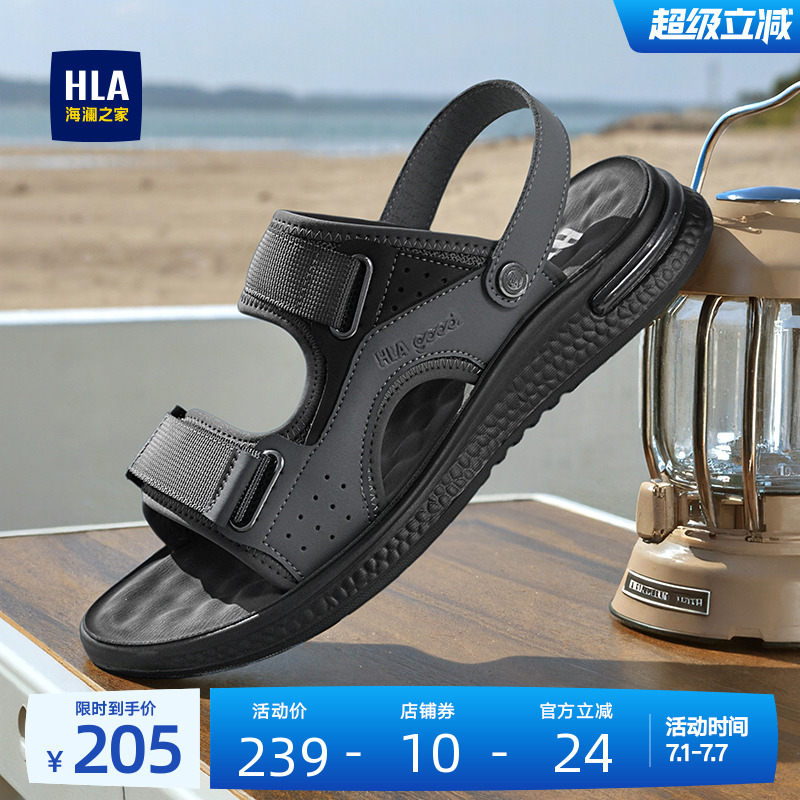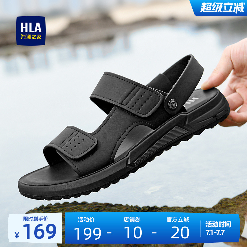 HLA/海瀾之家男鞋新款夏季戶外透氣休閑運動涼鞋拖鞋兩穿沙灘鞋男