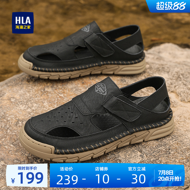 HLA/海瀾之家男鞋新款夏季戶外透氣休閑包頭涼拖鞋耐磨舒適沙灘鞋