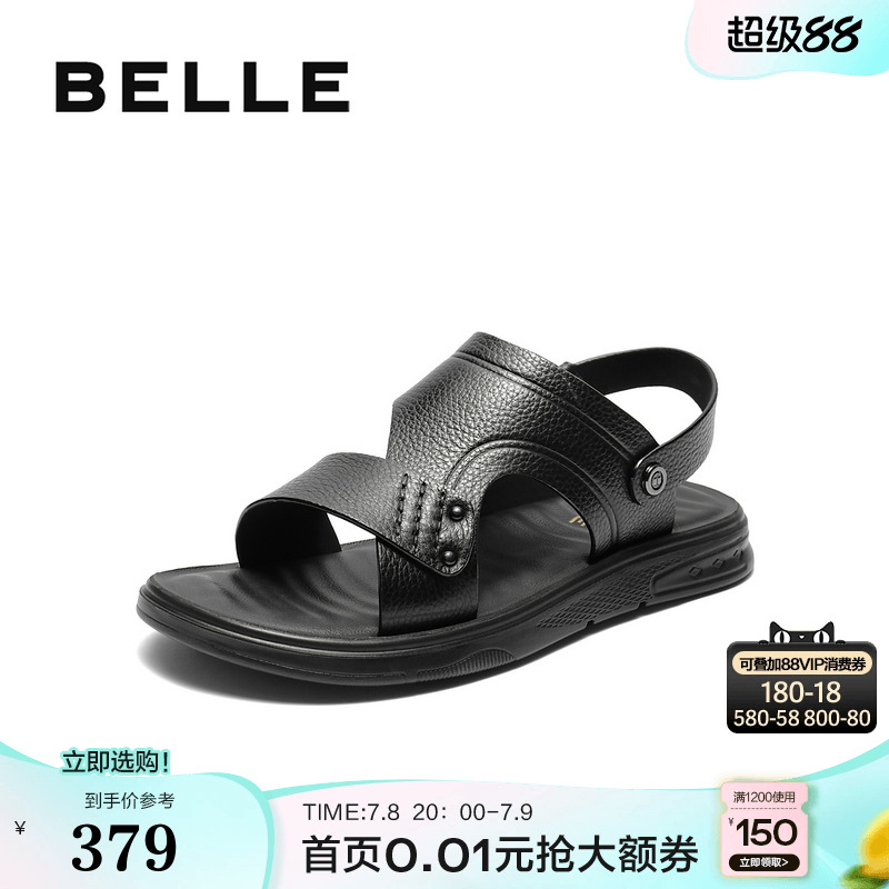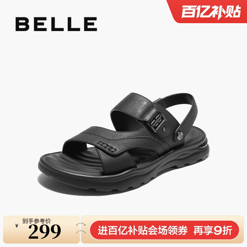 百麗男鞋舒適休閑涼鞋男士夏季商場同款真牛皮涼拖兩穿8UQ01BL5