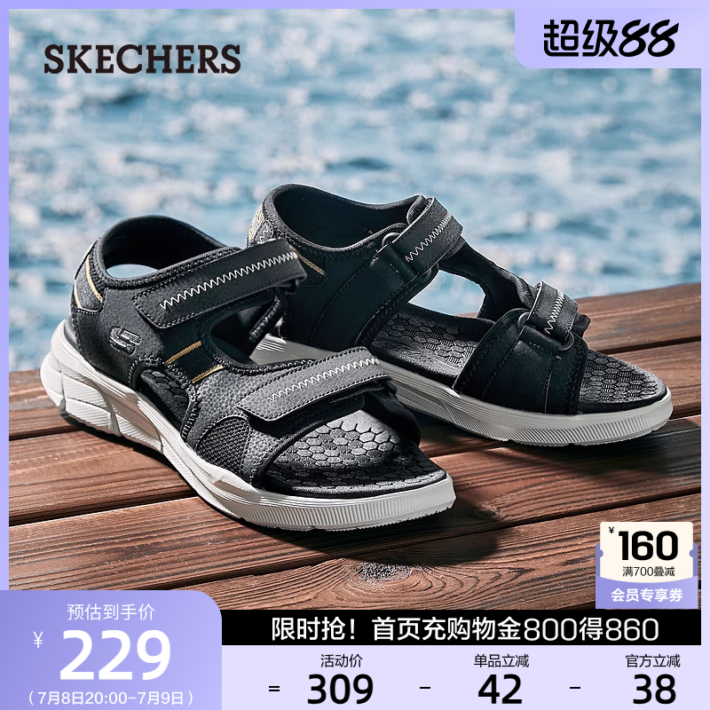 斯凱奇男鞋夏季休閑涼鞋輕便舒適魔術貼沙灘鞋時尚潮流外穿拖鞋