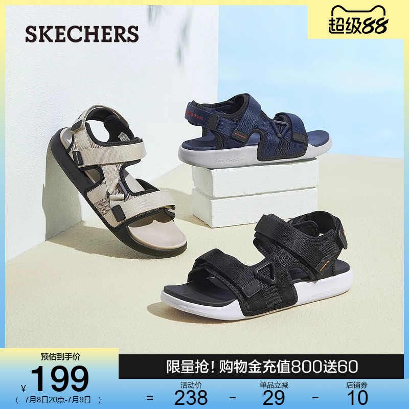 Skechers斯凱奇男鞋夏季戶外涼鞋魔術貼沙灘鞋外穿開車通勤休閑鞋